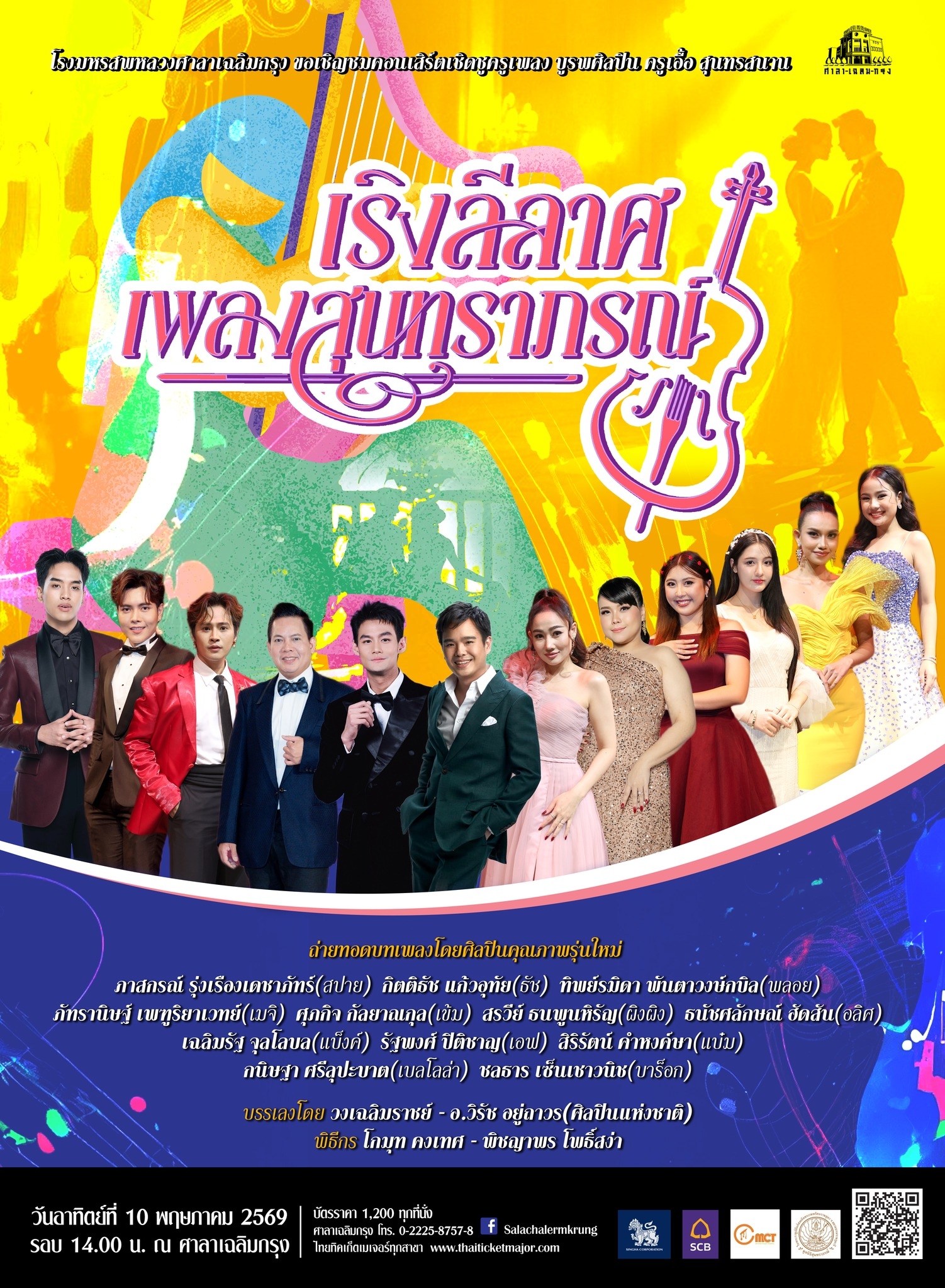 ขอเชิญร่วมสืบสานบทเพลงสุนทราภรณ์ ในคอนเสิร์ต “เริงลีลาศ เพลงสุนทราภรณ์” วันอาทิตย์ที่ 10 พฤษภาคม 2569 รอบ 14.00 น. ณ โรงมหรสพหลวงศาลาเฉลิมกรุง